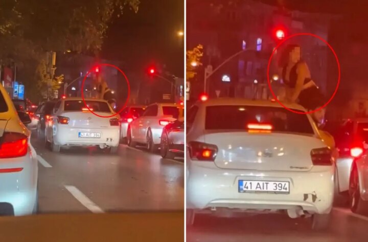 Bağdat Caddesi'nde hareket halindeki bir aracın camından sarkarak twerk yapan genç bayanın imajları reaksiyon...