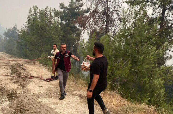 Sakarya'nın Geyve ilçesindeki orman yangınına müdahale eden takımlara Pamukova'dan sıcak simit ve ikramlarla dayanak...