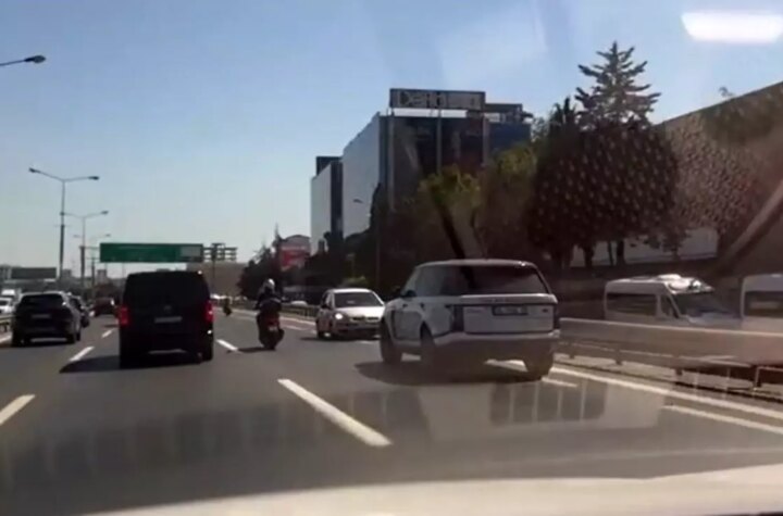 İstanbul Basın Ekspres yolunda, aksi tarafta giden bir araba geri geri hareket ederek başka...