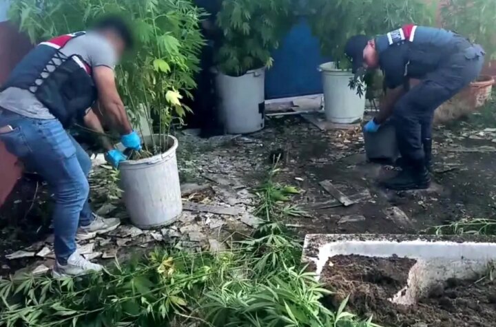Sakarya'nın Geyve ilçesinde gerçekleştirilen jandarma operasyonunda 302 kök kenevir bitkisi, 9 gram kenevir tohumu...