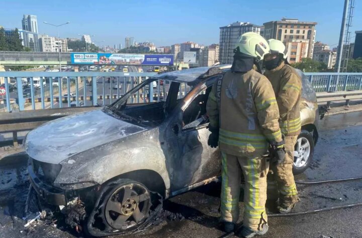 Ataşehir Bostancı Köprüsü üzerinde seyir halindeyken alev alan cip kullanılamaz hale geldi. Olayda yaralanan...