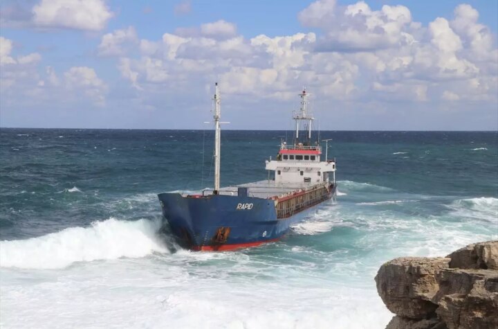 Kocaeli'nin Kandıra ilçesi kıyısında karaya oturan RAPID isimli kuru yük gemisinin Bartın'dan Ukrayna'ya gittiği,...