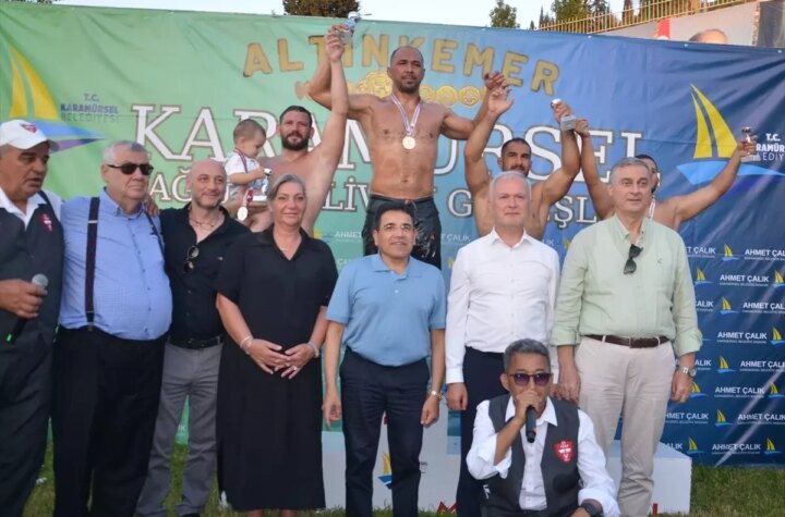 Kocaeli'nin Karamürsel ilçesinde düzenlenen 41. Klâsik Karamürsel Yağlı Pehlivan Güreşleri'nde Ali Gürbüz, Yıldıray Akın'ı...