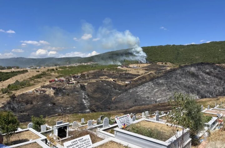 İzmit ilçesinde çıkan yangın, itfaiye ve orman bölge müdürlüğü takımlarının havadan ve karadan müdahalesiyle...